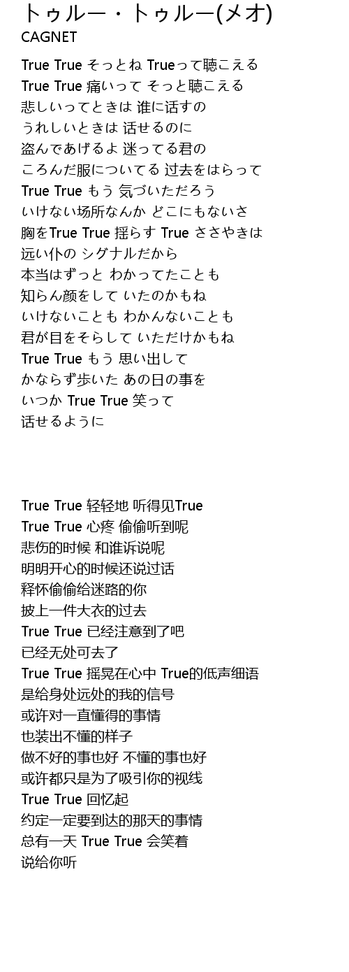 | [00:11.54] | True True 痛いって そっと聴こえる |