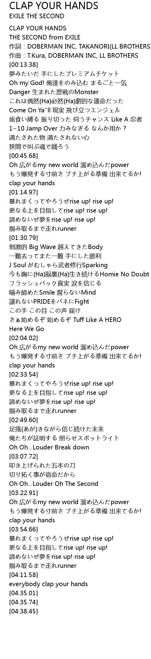 | [02:34.03] | 暴れまくってやろうぜrise up! rise up! |
