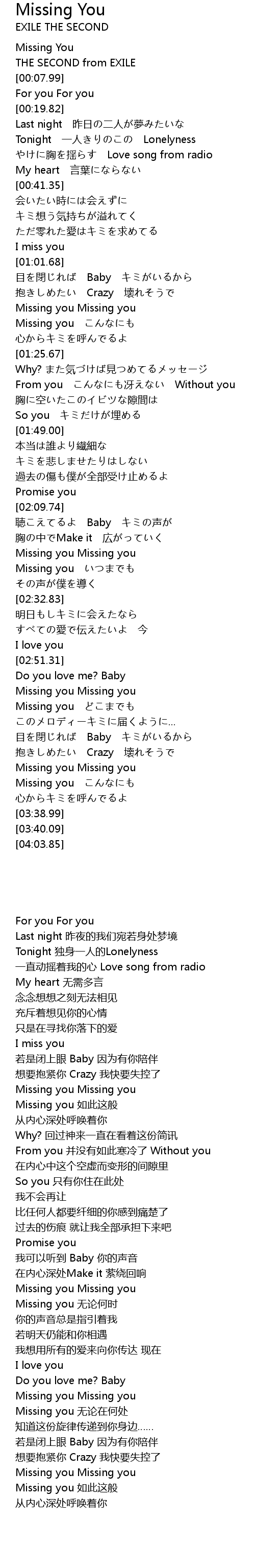 | [03:05.50] | Missing you Missing you |