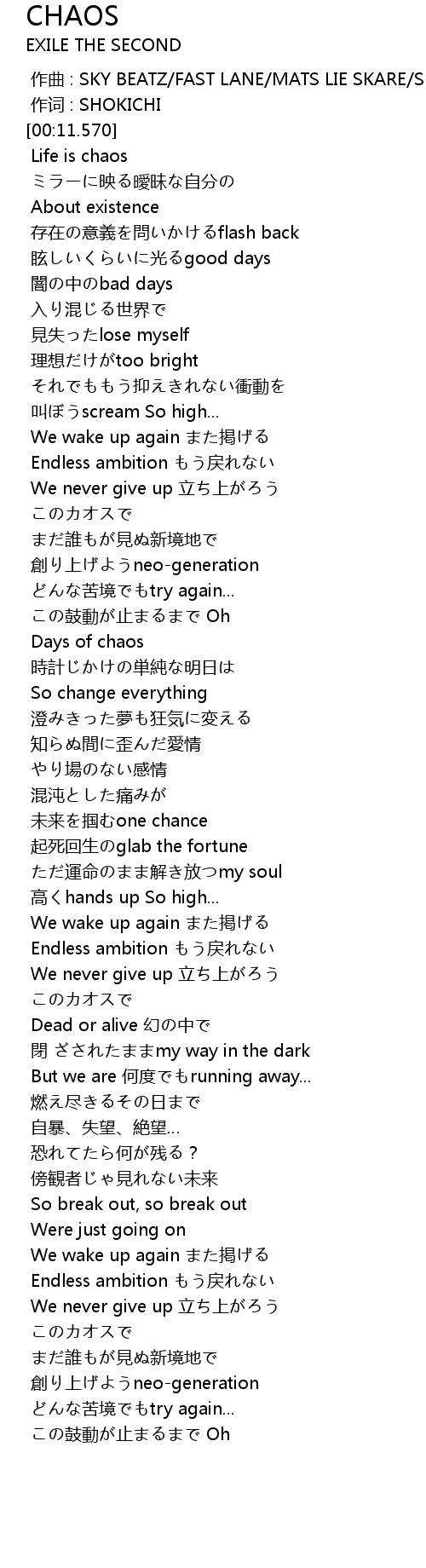 | [00:00.00] | 作曲 : SKY BEATZ/FAST LANE/MATS LIE SKARE/SHOKICHI |