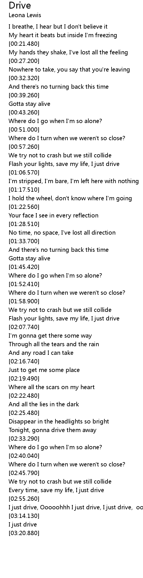I just drive, Ooooohhh I just drive, I just drive, oooohhhhh |