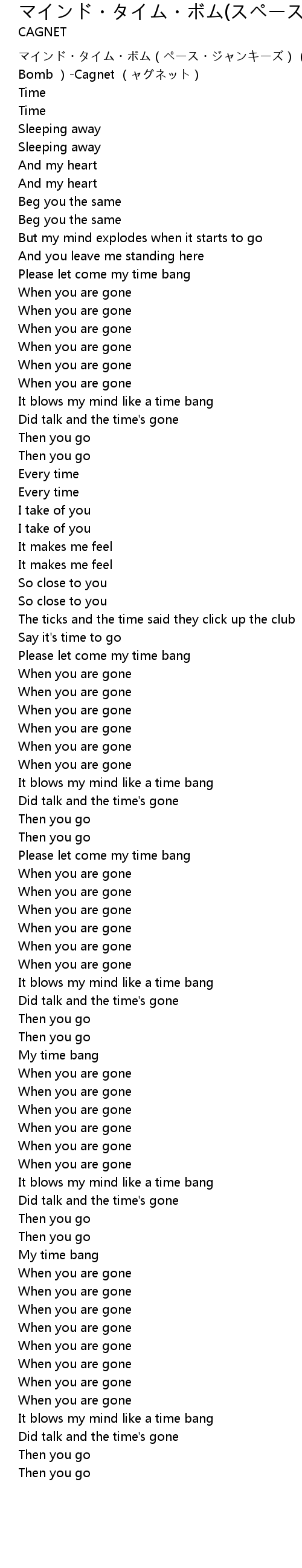 | [00:00.00] | マインド・タイム・ボム(ペース・ジャンキーズ)(Time Bomb )-Cagnet (ャグネット) |