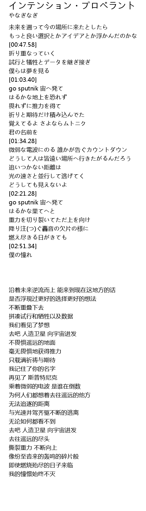 | [02:21.73] | go sputnik 宙へ発て |