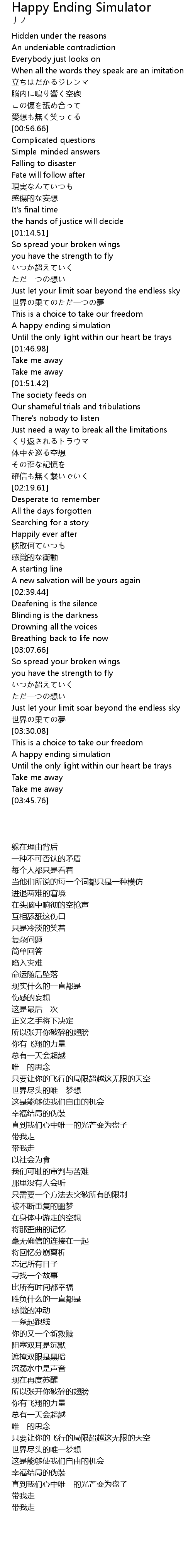 | 歌曲 | Happy Ending Simulator |