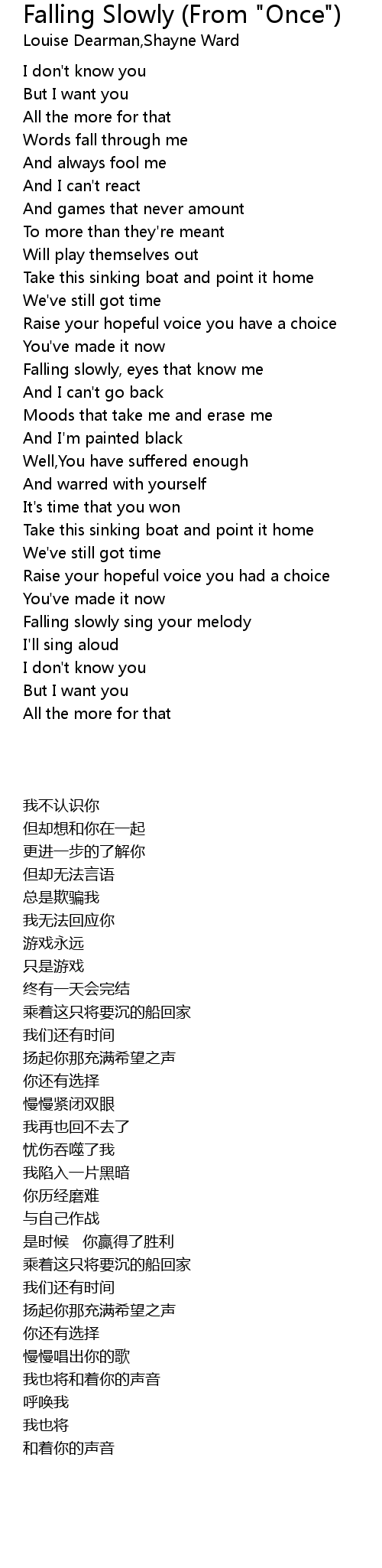 Falling slowly sing your melody |