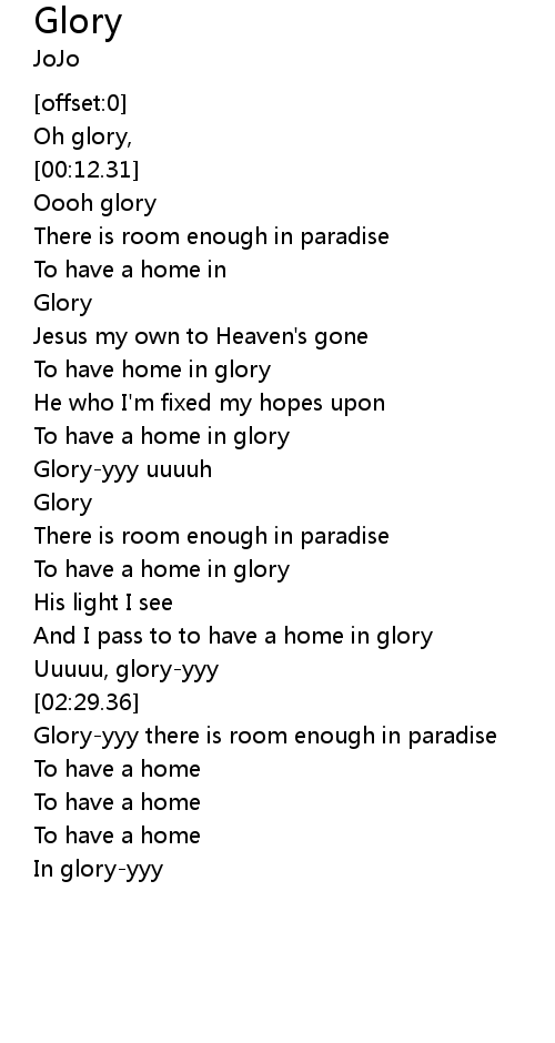 | [02:33.30] | Glory-yyy there is room enough in paradise |