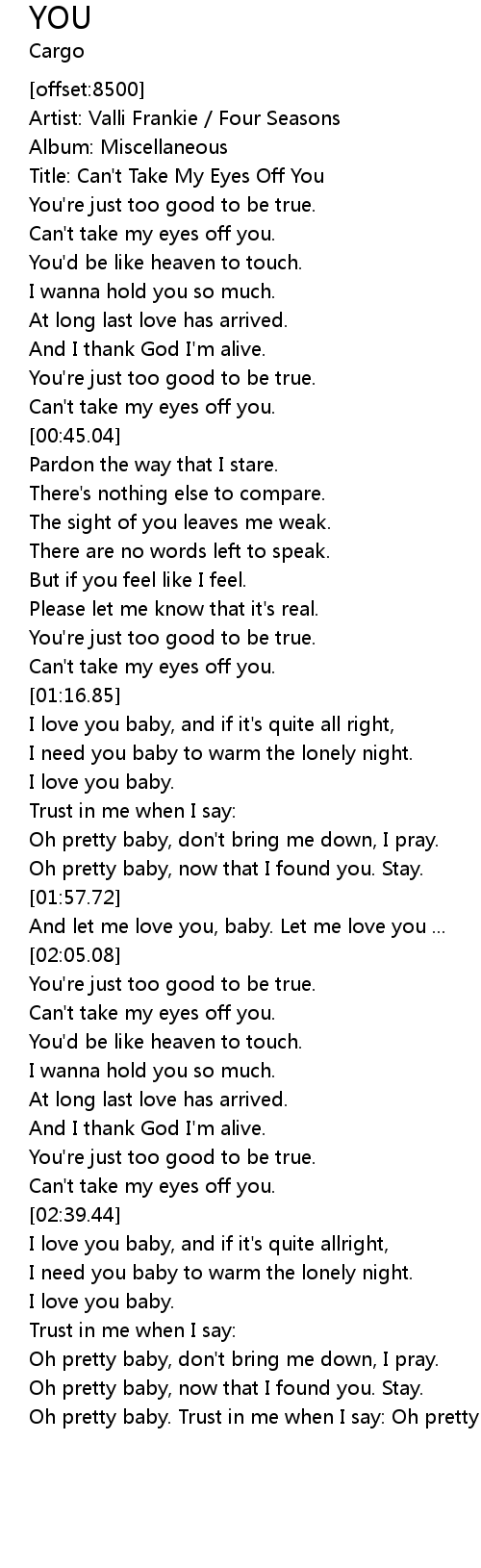 | [00:42.03] | Can't take my eyes off you. |