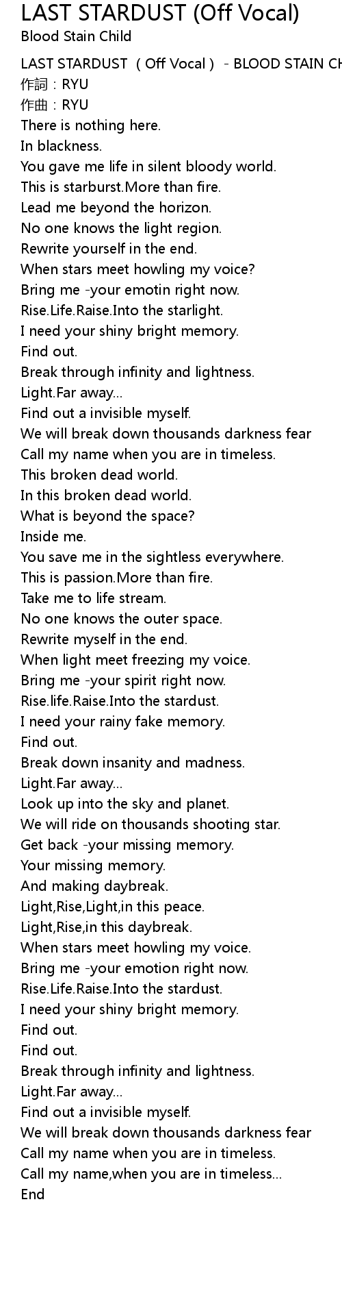 | [00:00.930] | LAST STARDUST Off Vocal BLOOD STAIN CHILD |