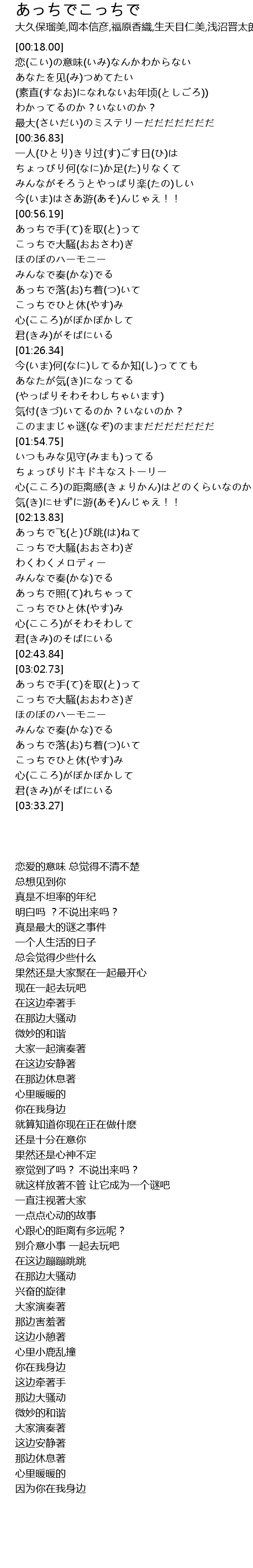 | [02:24.93] | あっちで照(て)れちゃって |