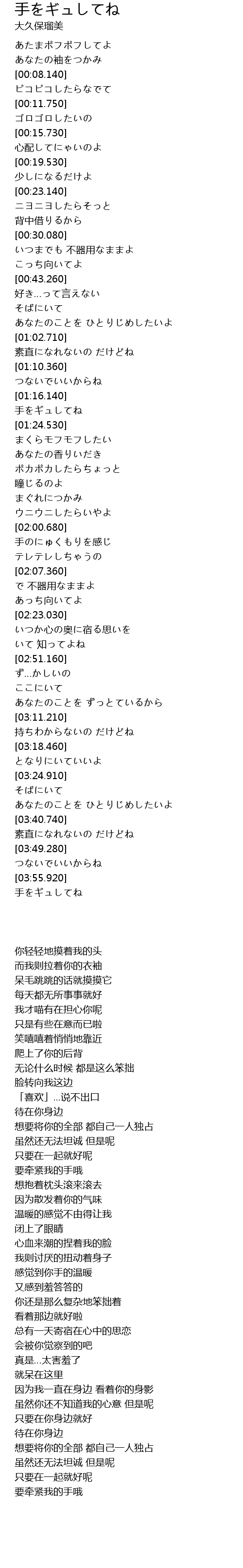 | [03:59.200] | 手をギュしてね |