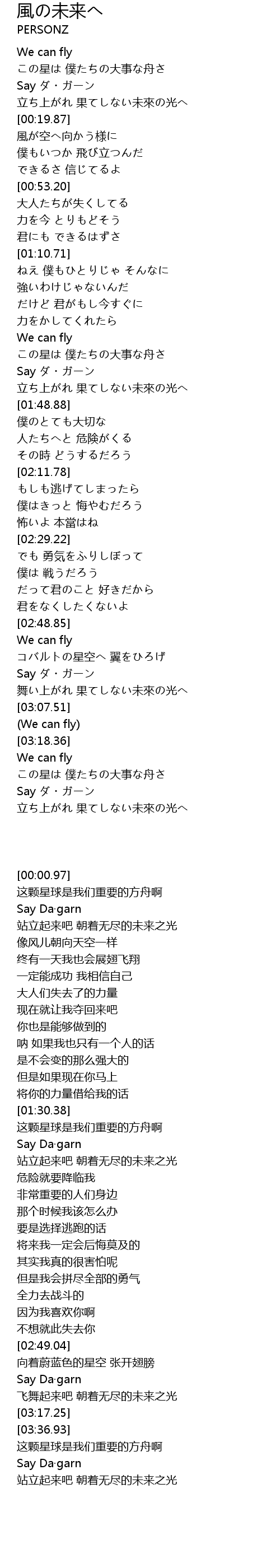 | [02:59.11] | 舞い上がれ 果てしない未來の光へ |