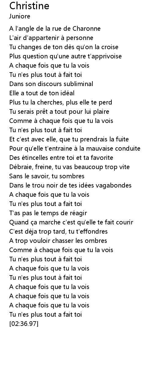 | [02:10.45] | Tu n'es plus tout à fait toi |