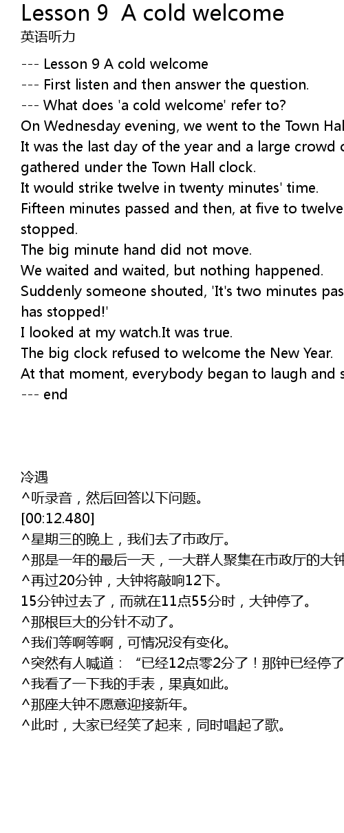 --- Lesson 9 A cold welcome |