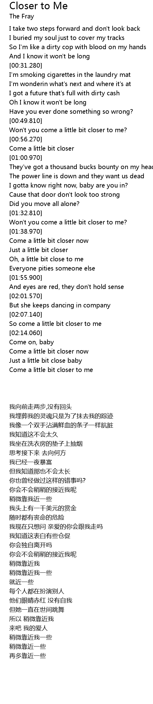 So come a little bit closer to me |