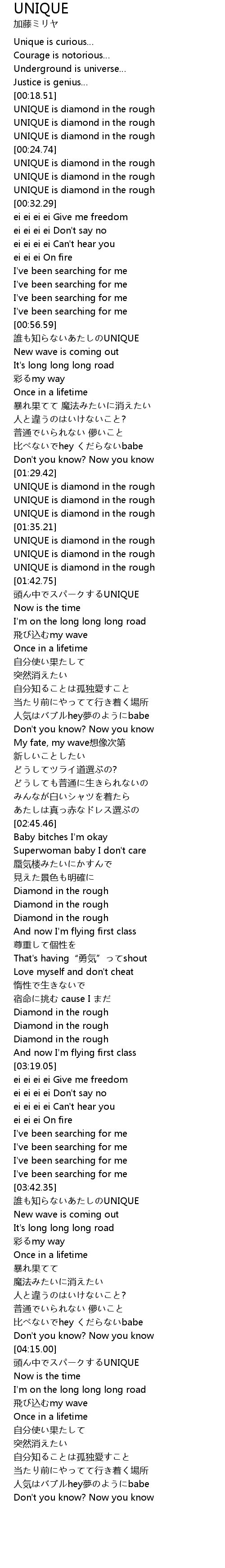 | [01:38.95] | UNIQUE is diamond in the rough |