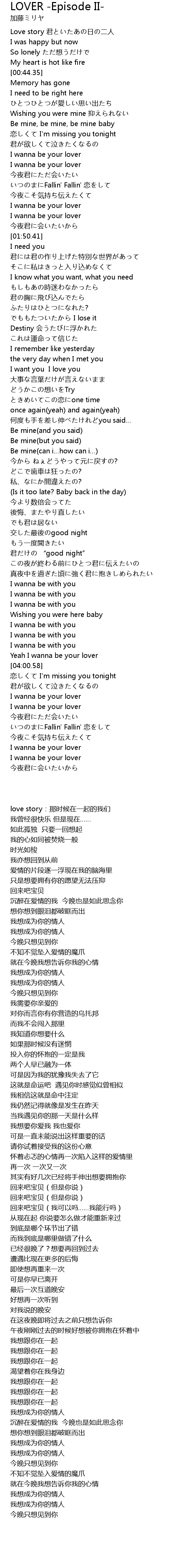 | [04:01.12] | 恋しくて I'm missing you tonight |