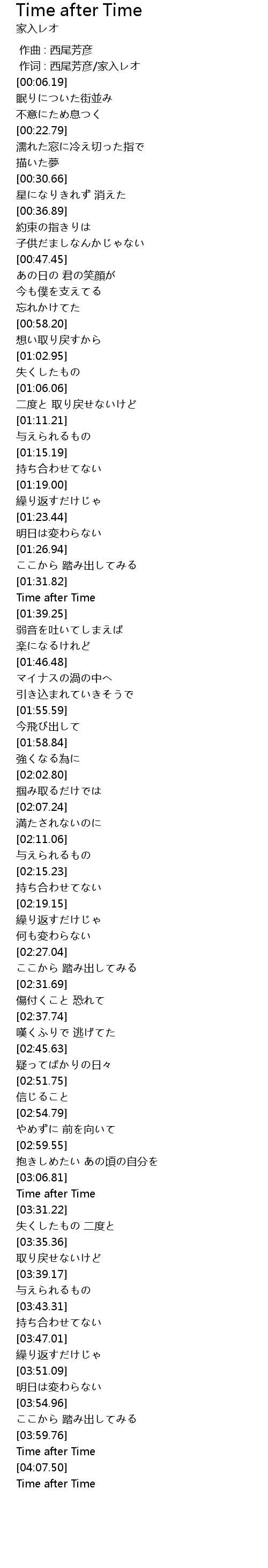 | [04:06.51] | Time after Time |