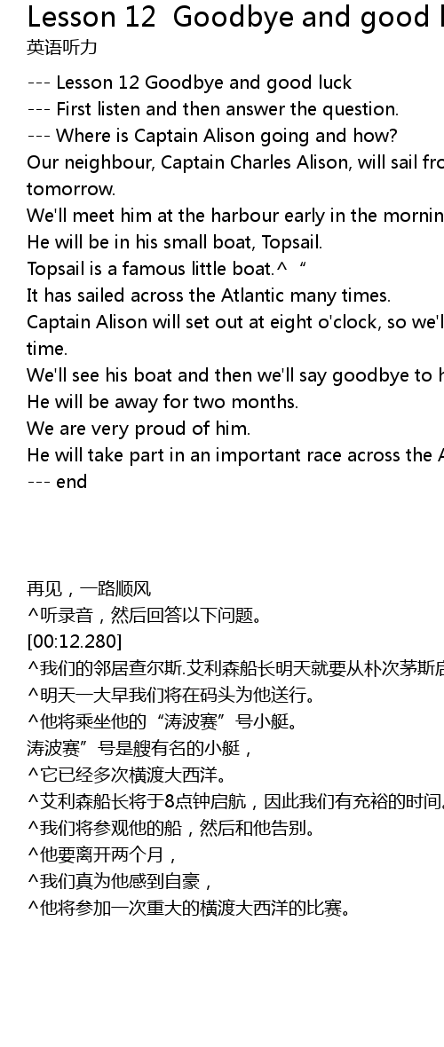 | [00:00.840] | Lesson 12 Goodbye and good luck |