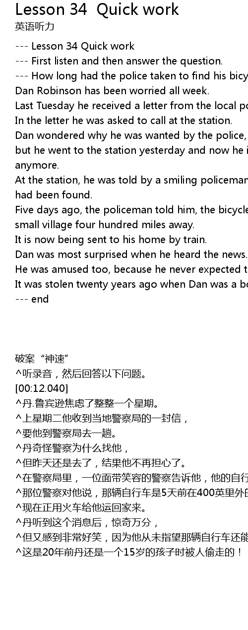 --- Lesson 34 Quick work |