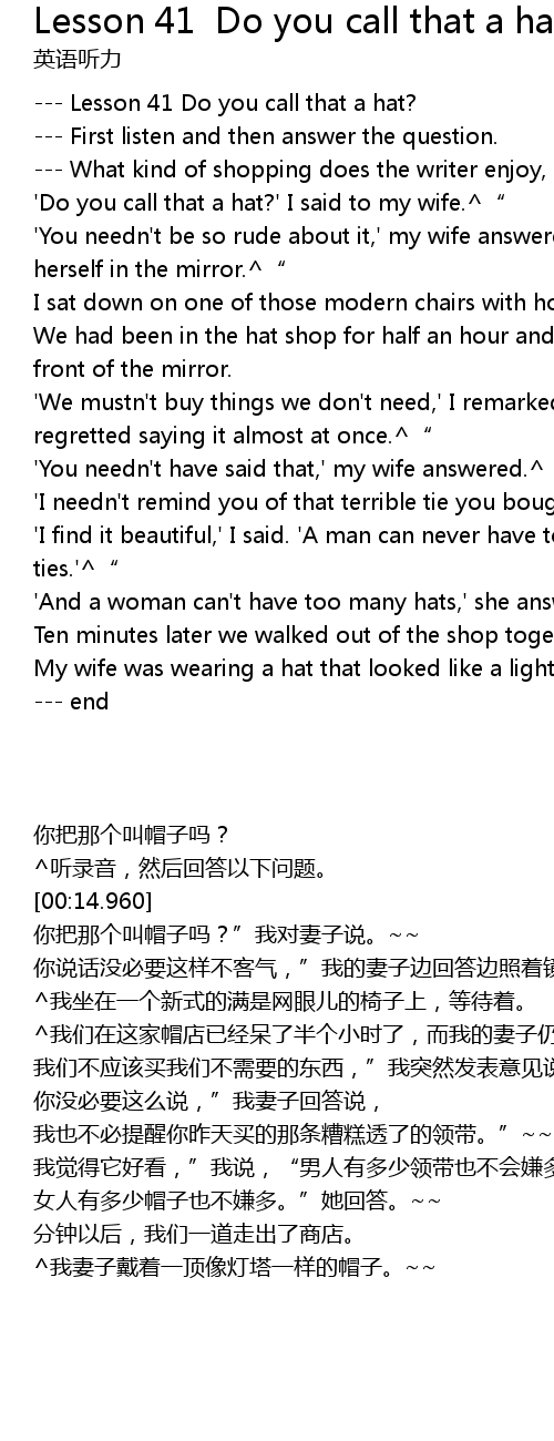 | [00:01.120] | Lesson 41 Do you call that a hat? |