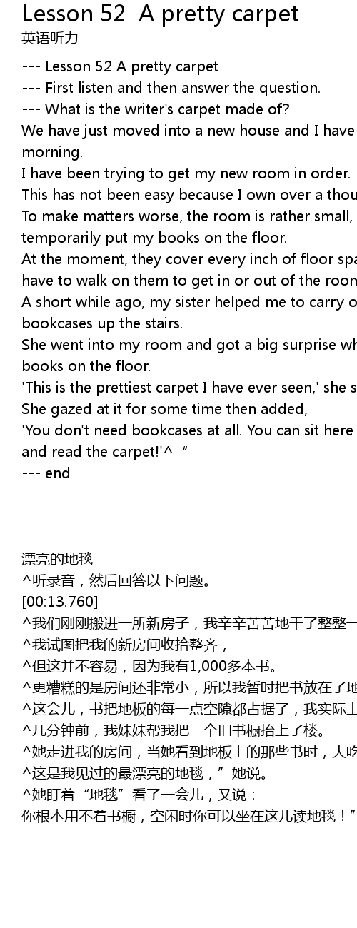 | [00:01.080] | --- Lesson 52 A pretty carpet |