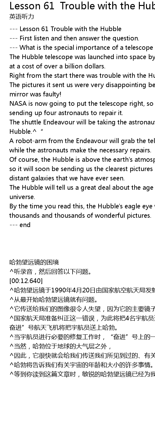 | [00:01.080] | Lesson 61 Trouble with the Hubble |