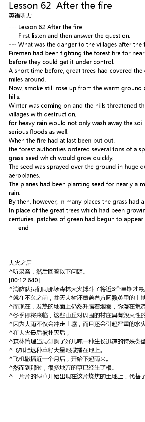 the forest authorities ordered several tons of a special type of grass-seed which would grow quickly. |