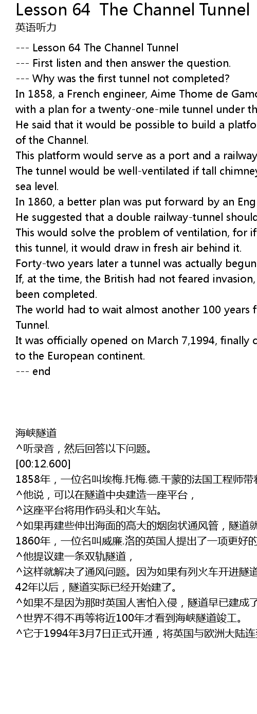 --- Lesson 64 The Channel Tunnel |