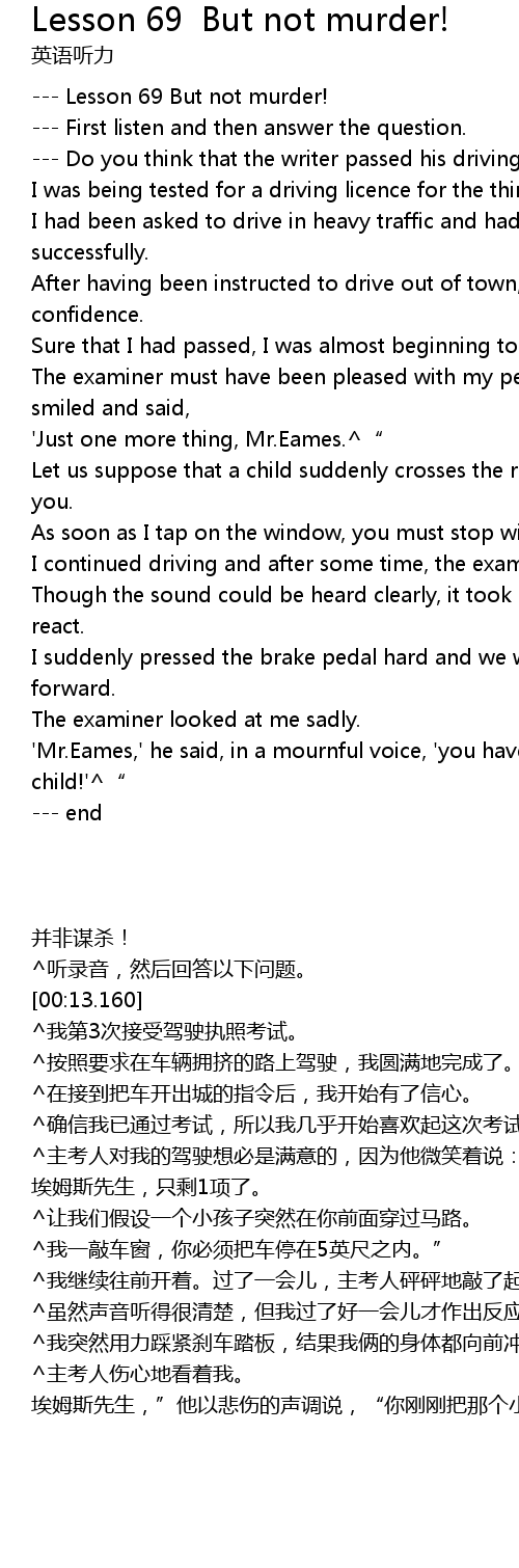 | [00:13.160] | Do you think that the writer passed his driving test? why? |