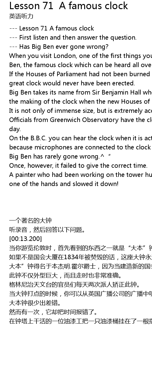 | [00:01.080] | --- Lesson 71 A famous clock |