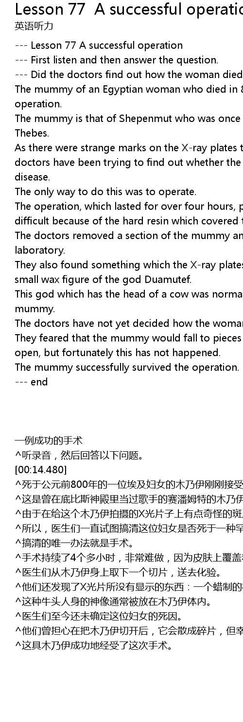 --- Lesson 77 A successful operation |