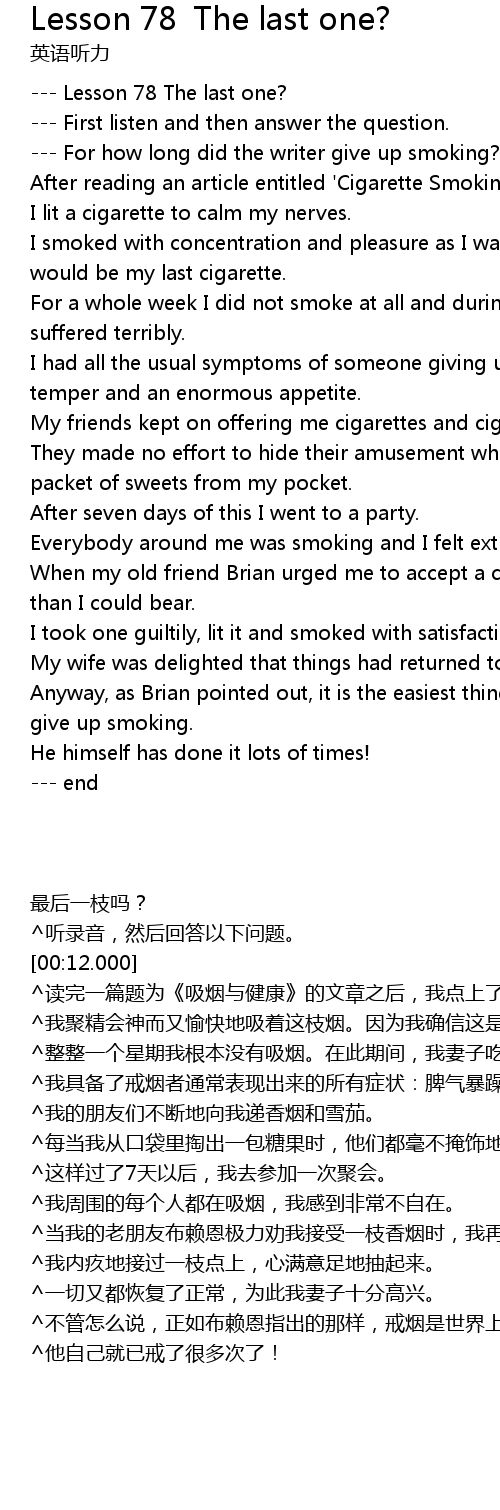 --- Lesson 78 The last one? |
