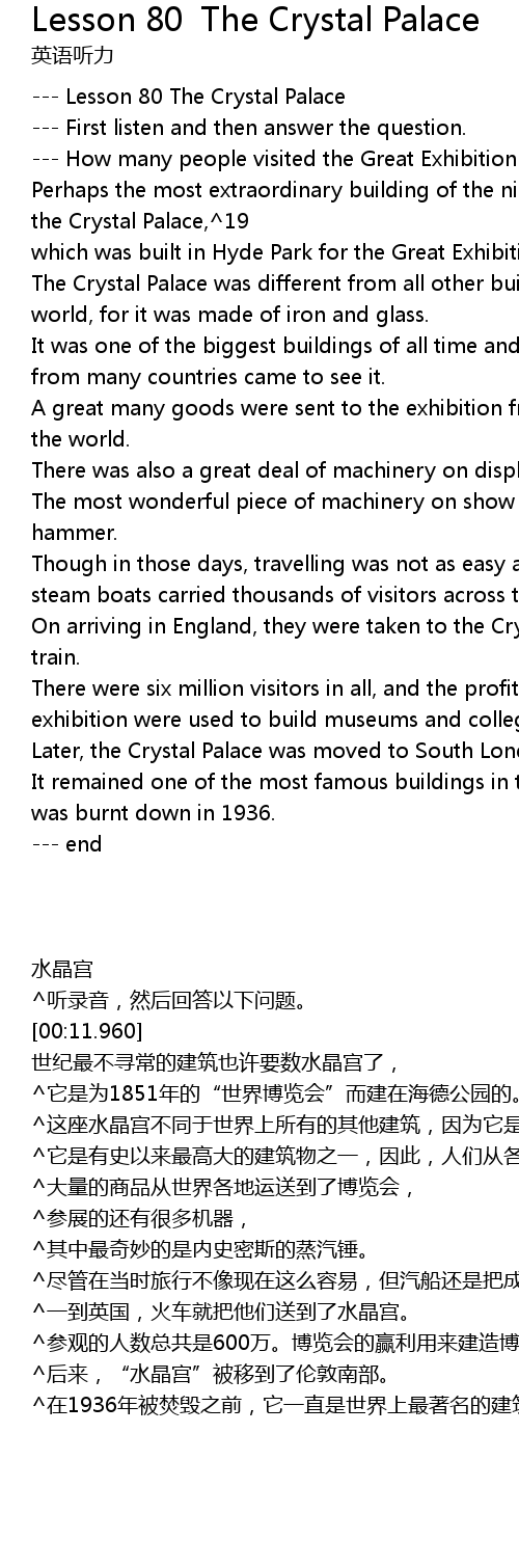 The Crystal Palace was different from all other buildings in the world, for it was made of iron and glass. |