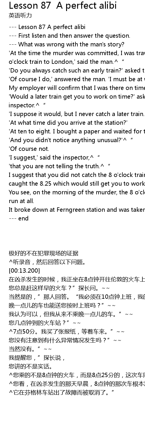 | [00:01.080] | Lesson 87 A perfect alibi |