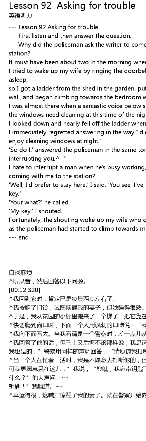 | [00:01.080] | --- Lesson 92 Asking for trouble |