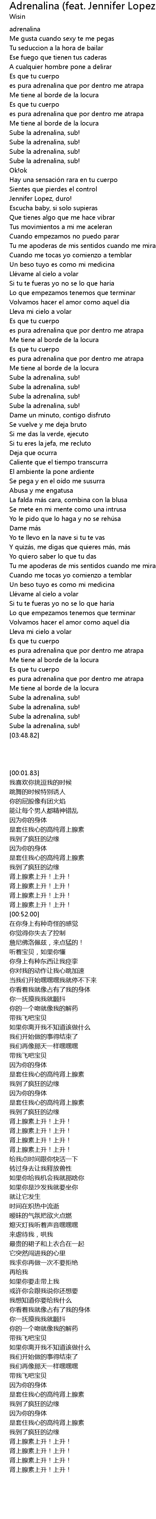 | 歌曲 | Adrenalina (feat. Jennifer Lopez & Ricky Martin) |