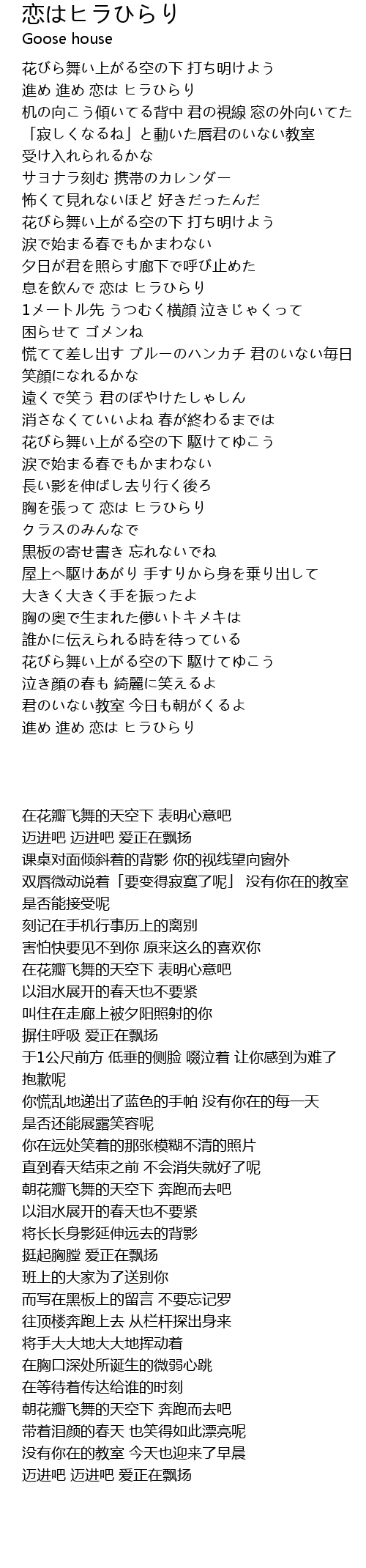 | [02:16.660] | 朝花瓣飞舞的天空下 奔跑而去吧 |