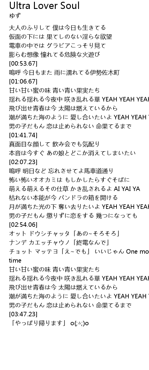 | [03:37.49] | 男の子だもん 恋は止められない 命果てるまで |