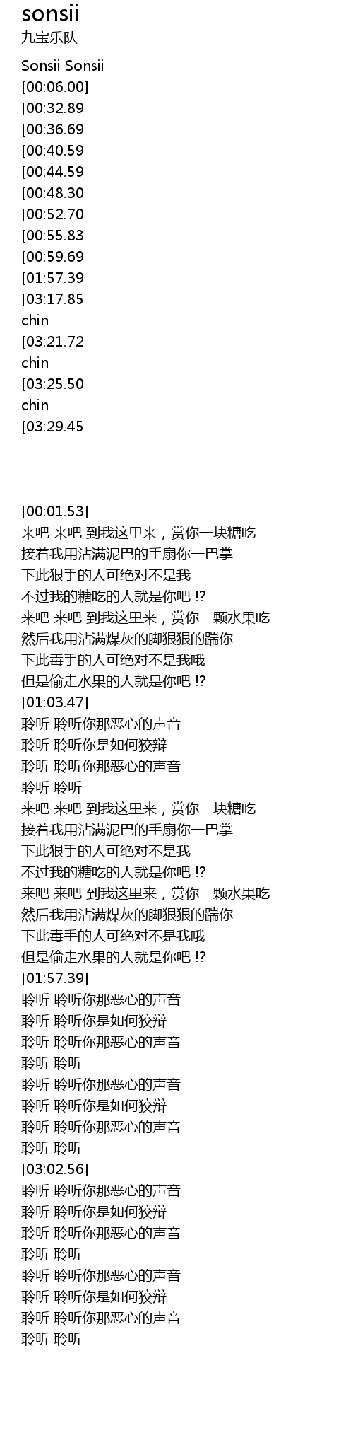 | [03:44.82][03:29.45][02:31.83][02:16.47][01:22.78] | sonsii sonsii |
