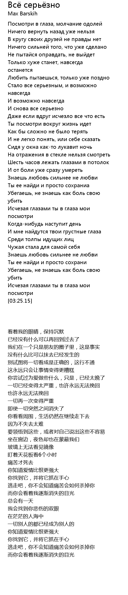 | 歌曲 | Всё серьёзно |