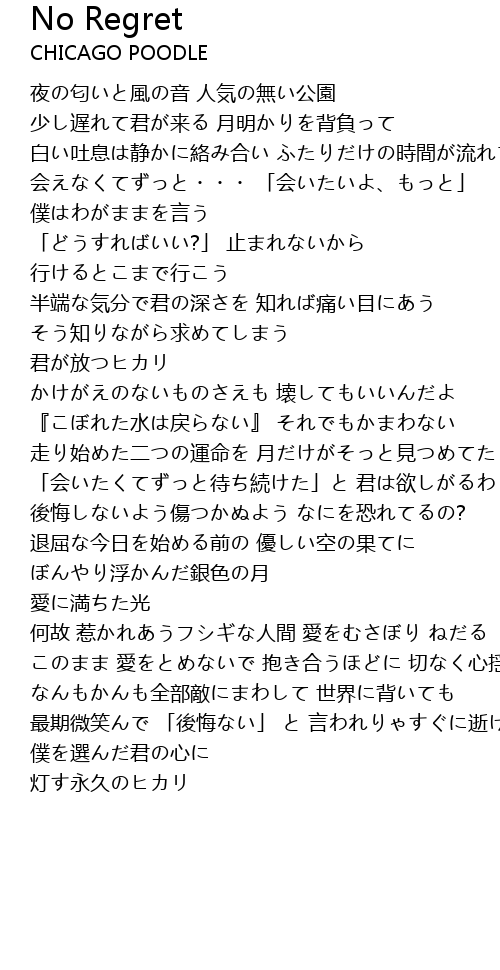 | 後悔しないよう傷つかぬよう なにを恐れてるの? | |