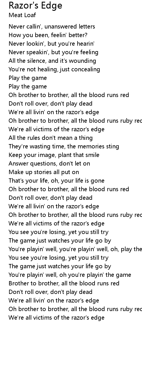We're all livin' on the razor's edge |