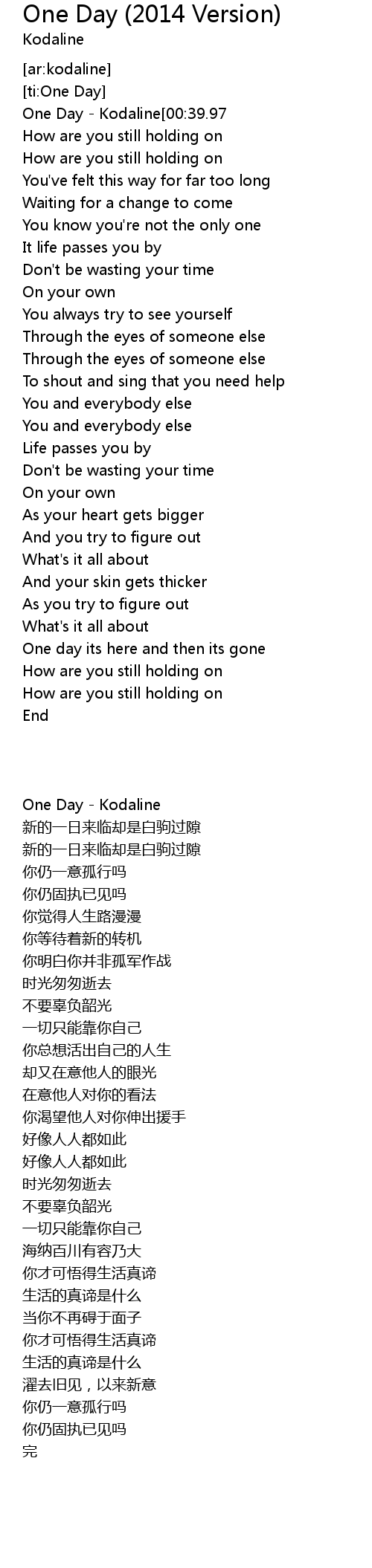 | [00:09.92]One Day - Kodaline[00:39.97] |