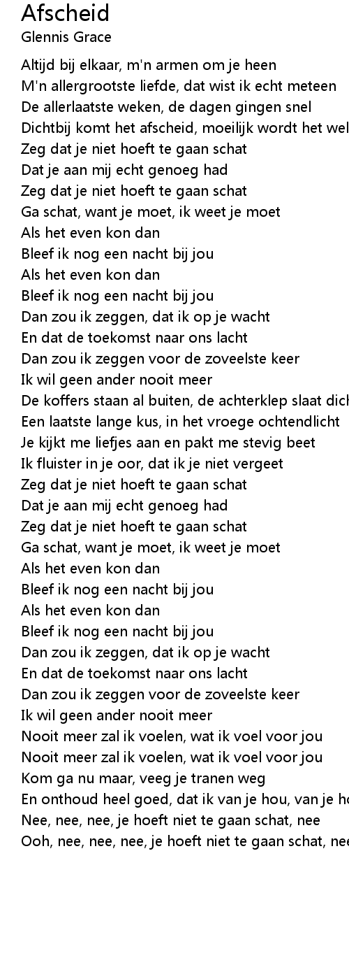 Ga schat, want je moet, ik weet je moet |