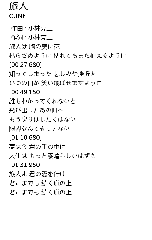 | [01:32.910] | 旅人よ 君の愛を行け |