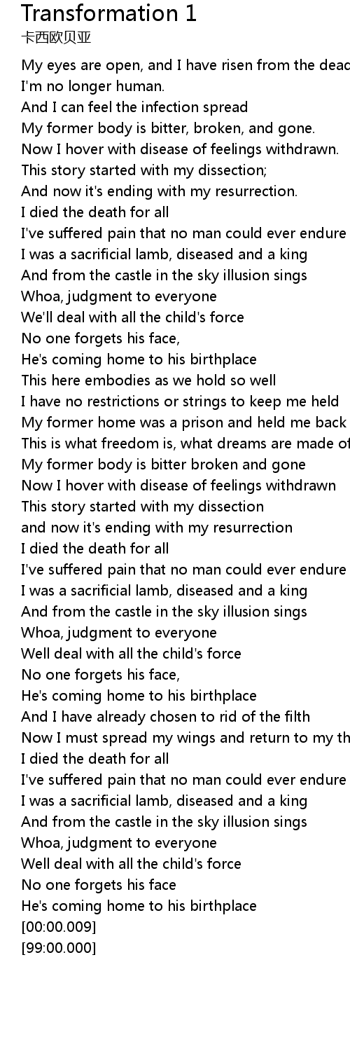 | [00:31.63] | My former body is bitter, broken, and gone. |