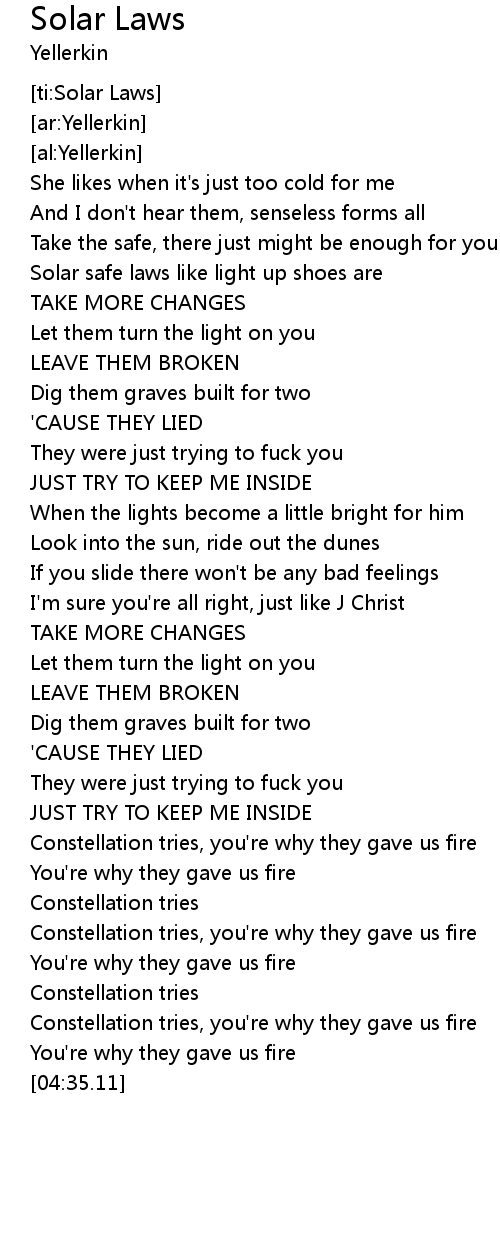 | [03:32.47] | Constellation tries, you're why they gave us fire |