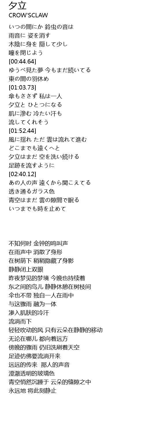 | [02:12.98] | 夕立はまだ 空を洗い続ける |