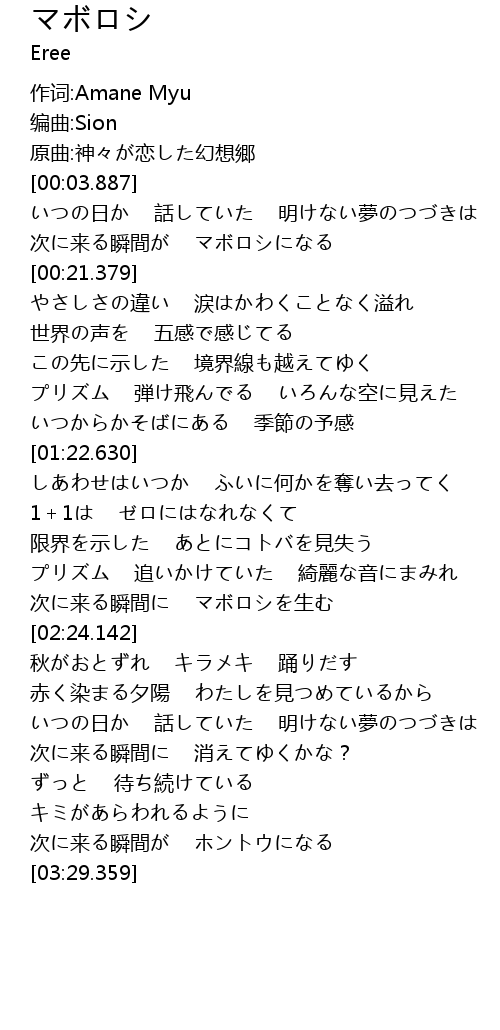 | [02:15.661] | 次に来る瞬間に マボロシを生む |