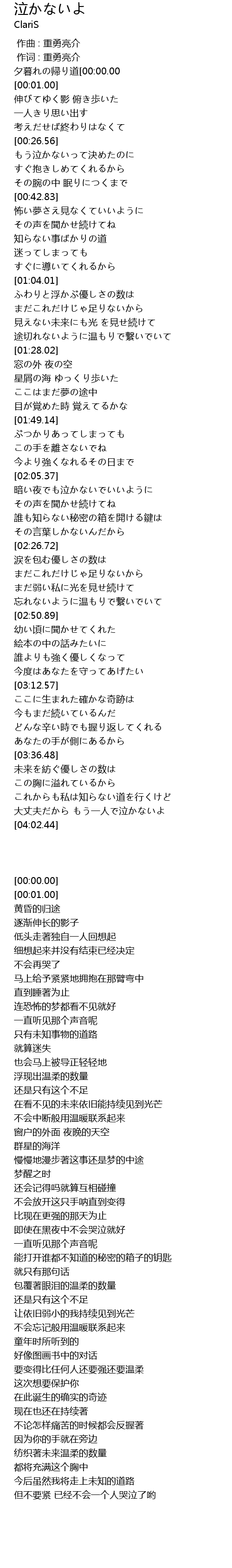 | [00:00.00] | 作词 : 重勇亮介 |
